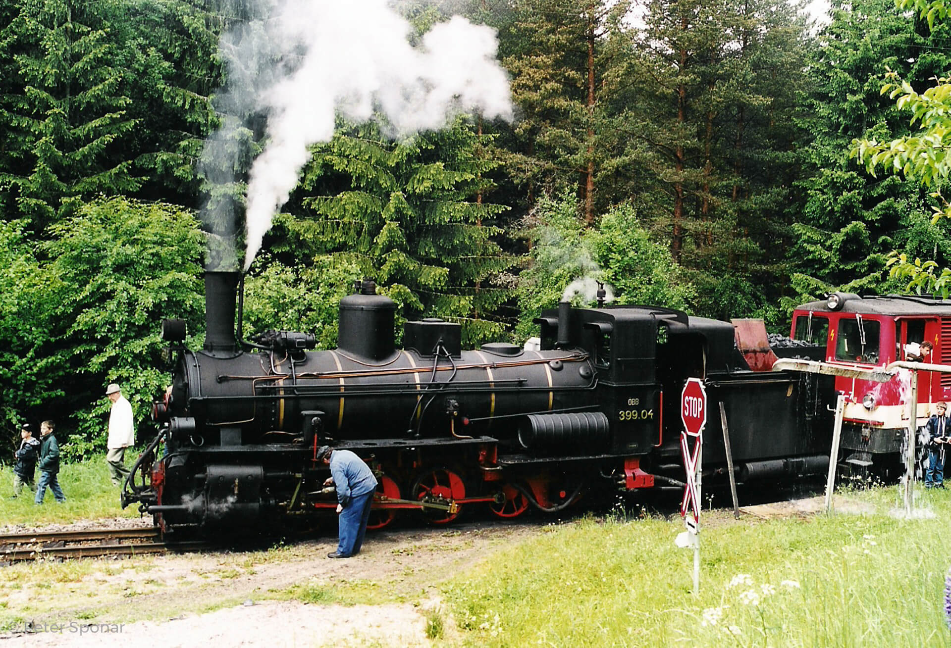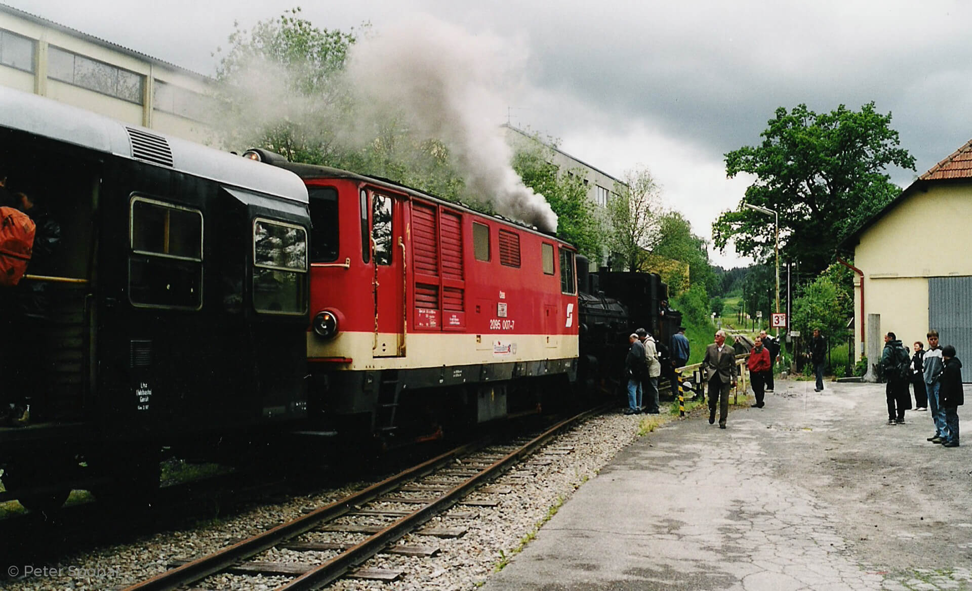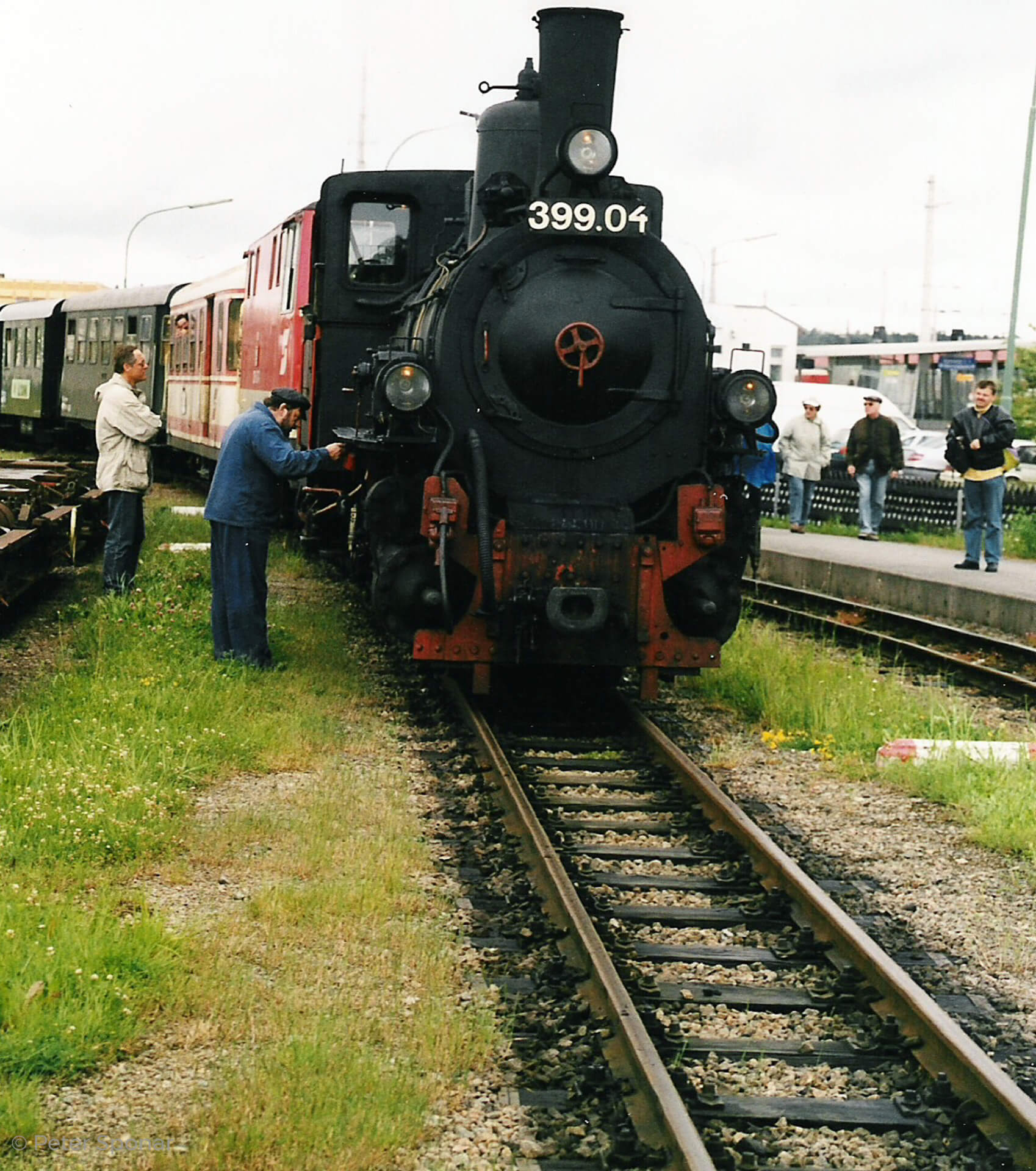 Die ÖBB 399.04 zieht in Doppeltraktion mit ÖBB 2095 007-7 den Mohnzelten Express von Gmünd auf die - ich glaube - Südstrecke nach Groß Gerungs. Das Wetter an diesem Tag war mal wieder sehr durchwachsen.