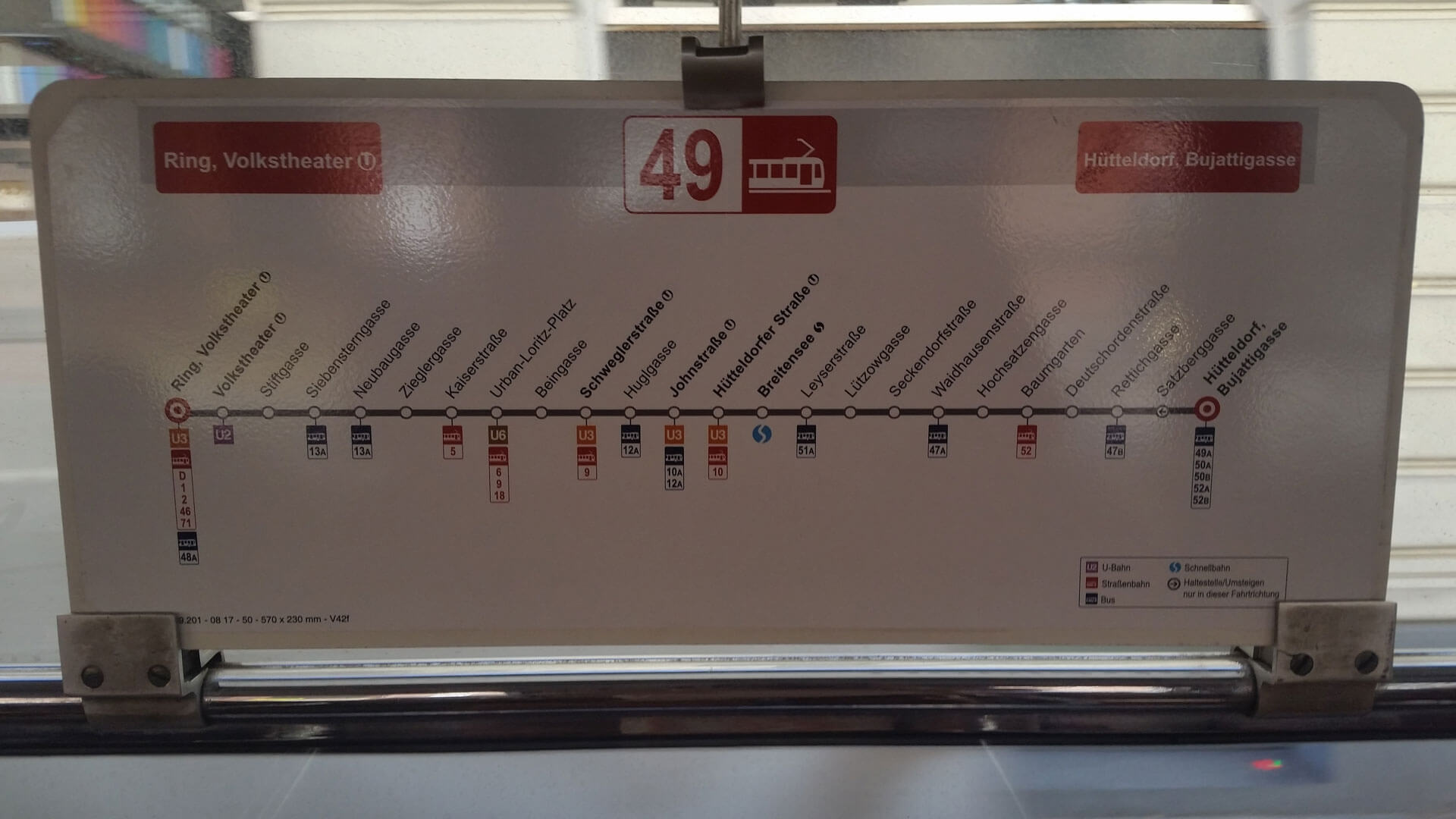 Die Linie 49 existiert seit 14. Februar 1907 und verkehrt bis heute (Stand 2013) auf der ursprünglichen Strecke. Schon seit 1873 bestand auf einem Teil der Strecke (vom Gürtel bis zum ehemaligen Bahnhof Breitensee) ein Betrieb als Pferde-Tramway, seit 1885 mit Dampfbetrieb bis zur Linzer Straße, seit 1903 elektrisch auf der heutigen Strecke und seit 1907 als Linie 49. Vor Errichtung der Bellaria-Schleife und auch noch etwas danach wendeten die Züge (mit Hilfe von damals üblichen Zweirichtungswägen) in der Bellariastraße.